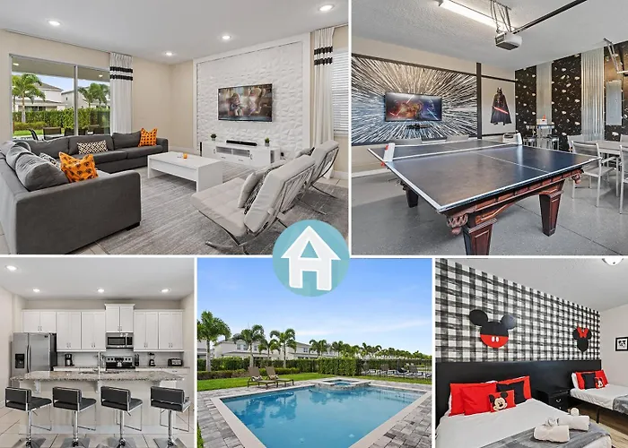 Le complexe sportif ESPN Wide World of Sports est niché à environ 15 minutes en voiture de cette villa de 6 chambres et le Ship Wreck Island Water Park est à 10 minutes en voiture. Cet établissement Unique Home Game Room Themed Bedrooms No carpet 2015 se trouve à une courte distance de lieux familiaux tels que le parc d'aventures Orlando Tree Trek.